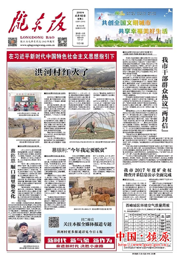 3月18日至22日,陇东报社“奋进新时代决胜小康路”主题采访组来到洪河村驻村蹲点采访,顺着川流不息的洪河,循着山间盛开的桃花,在鳞次栉比的钢架大棚里,在浓绿润泽的麦田间,探寻洪河村的发展。